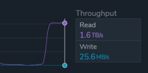 That capital “B” in TB matters. This is bytes, not bits. One byte equals eight bits, so 1.5 TB/s translates to roughly 12 terabits per second of sustained data movement. And sustained matters just as much. This is not a short-lived burst or a cache-assisted spike, but continuous throughput maintained over time.
