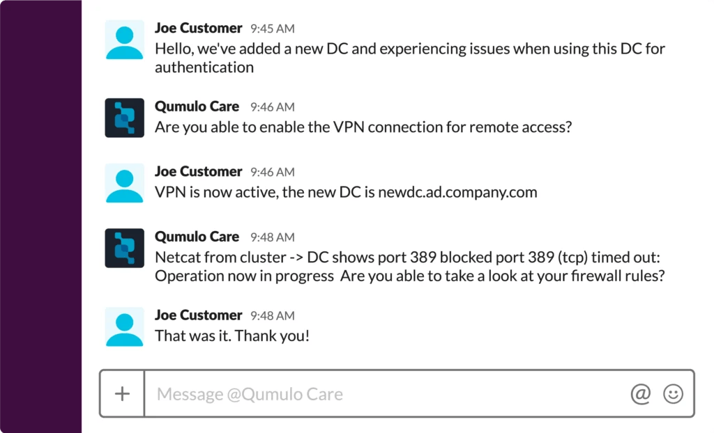 Descubra por qué nuestras puntuaciones NPS son las mejores del sector. Conéctese con nuestro equipo de soporte en tiempo real mediante Slack o Microsoft Teams.