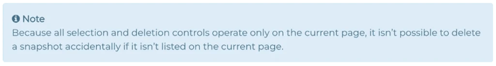 When you select more than one row, the Bulk Delete button appears. - When you finish selecting snapshots, click Bulk Delete.