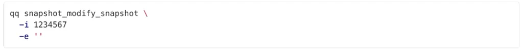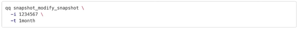 Use the qq snapshot_modify_snapshot command and specify the snapshot ID from the Saved Snapshots page in the Web UI (for example, for the 1234567_replication_from_prod snapshot, the ID is 1234567).