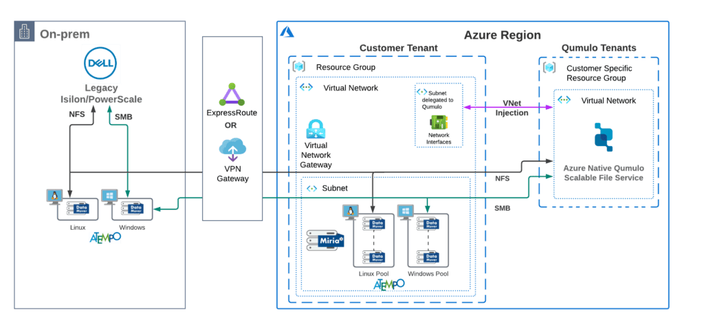 - The ANQ cluster used in the solution is deployed in Qumulo’s Azure tenant.